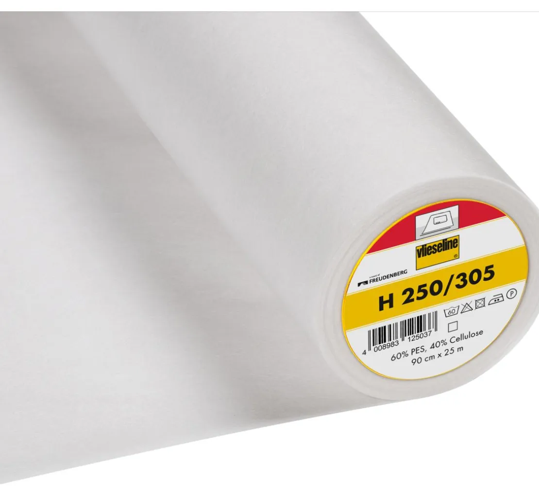 Vlieseline H250 ist geeignet für leichte bis mittelschwere Stoffe wie Baumwolle. Es lässt sich leicht verarbeiten, bis 60° C waschen und chemisch reinigen.