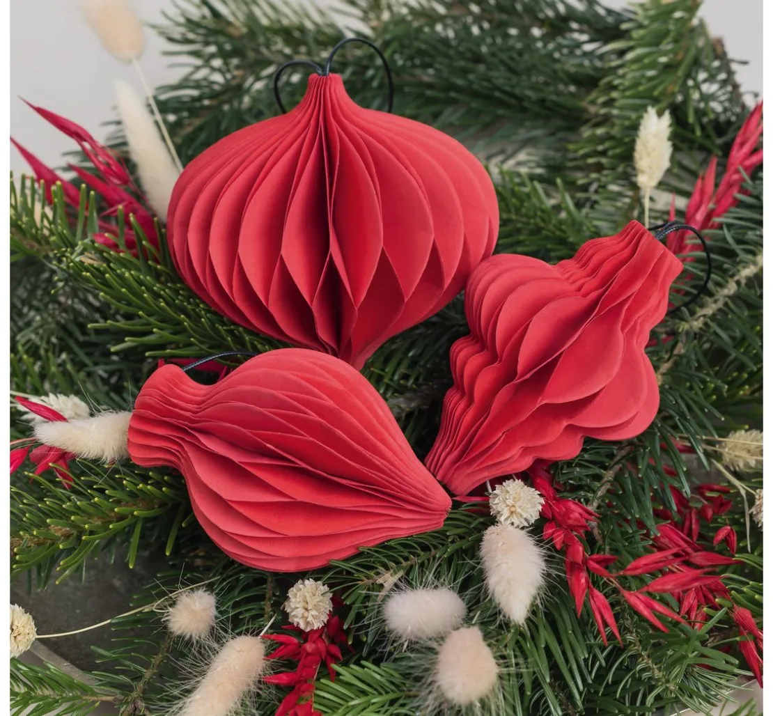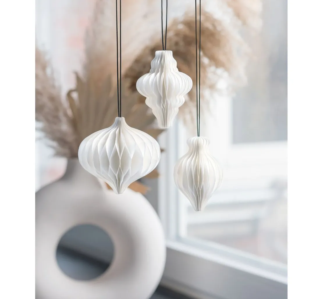 Das schicke Waben-Tropfen-Set beinhaltet 3 Tropfen zum Aufhängen in drei unterschiedlichen Tropfen-Formen. Die Tropfen haben eine Höhe von ca. 10 cm mit einem Papiergewicht von ca. 120 g/m².