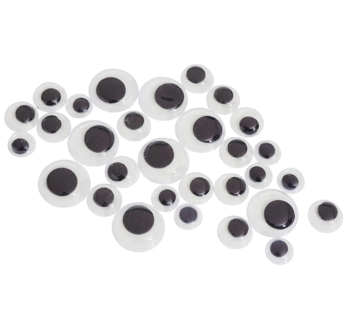 Toller nachtleuchtender Wackelaugen-Mix. Die selbstklebenden Wackelaugen haben eine Größe von ca. 8 mm, 10 mm und 14 mm. Sie erhalten 30 Stück.