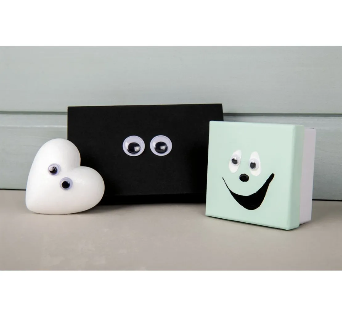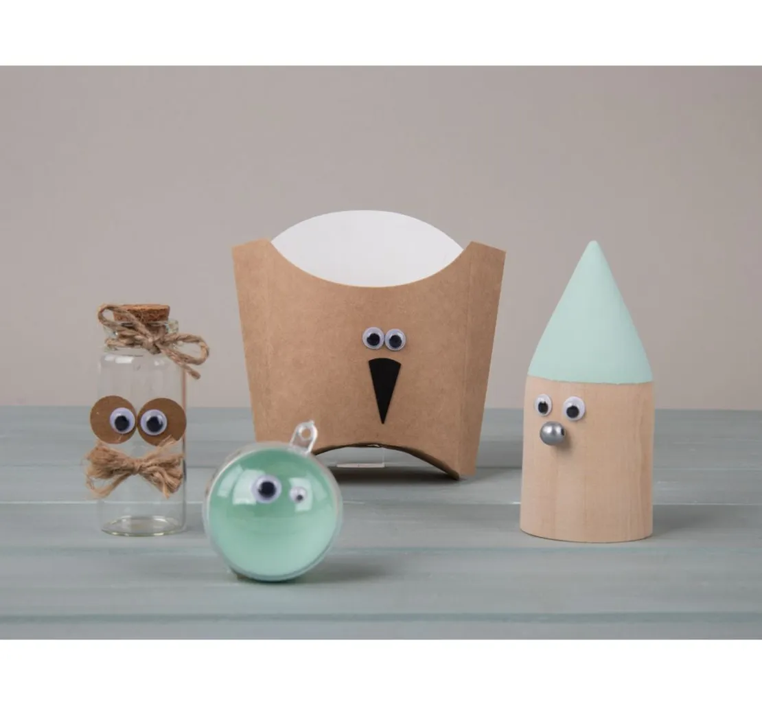 Mal groß, mal klein – in diesem Set ist immer die richtige Größe vorhanden. Mit Wackelaugen erwecken Sie Ihre selbst gestalteten Figuren zum Leben. Auch für die Gestaltung von Grußkarten oder Geschenkverpackungen sind Wackelaugen ein mega Spaß. Die Augen sind selbstklebend und werden einfach auf dem gewünschten Untergrund aufgeklebt. Hier ist für jede Bastelidee etwas dabei.