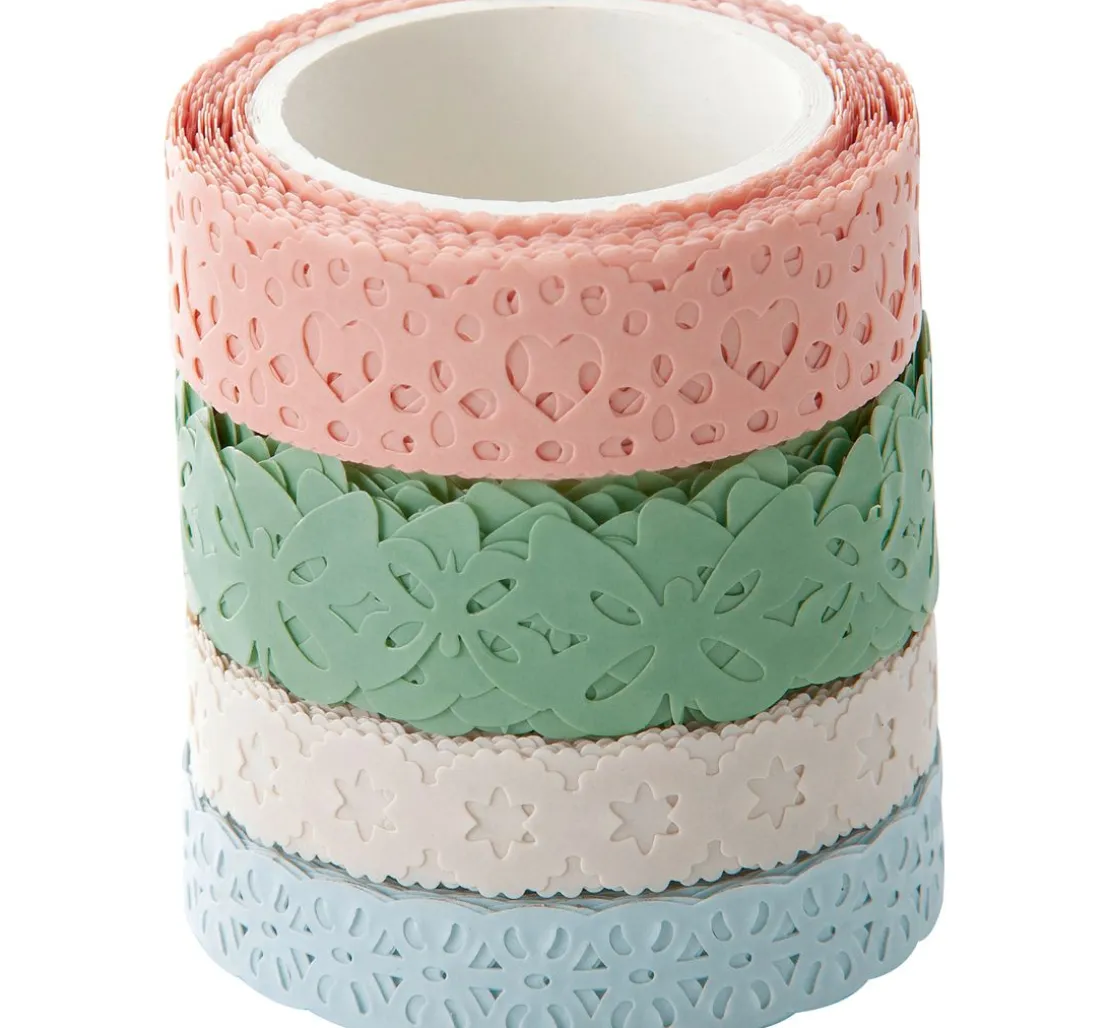 Dieses Washi-Dekor „Pastell-Mix“ besteht aus 4 Rollen mit einer Länge von ca. 5 m. Die harmonisch aufeinander abgestimmten Dekore haben eine Breite von ca. 10 mm und 15 mm.
