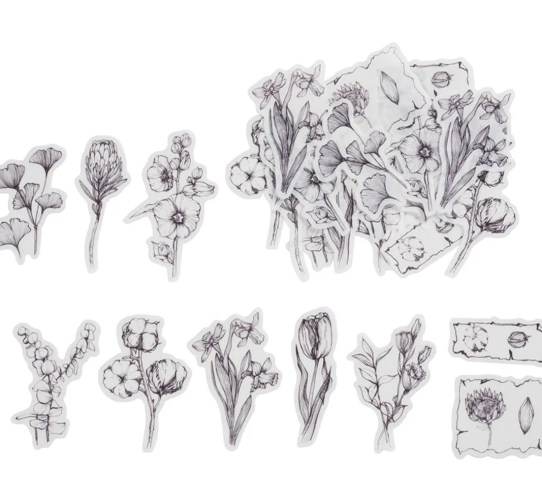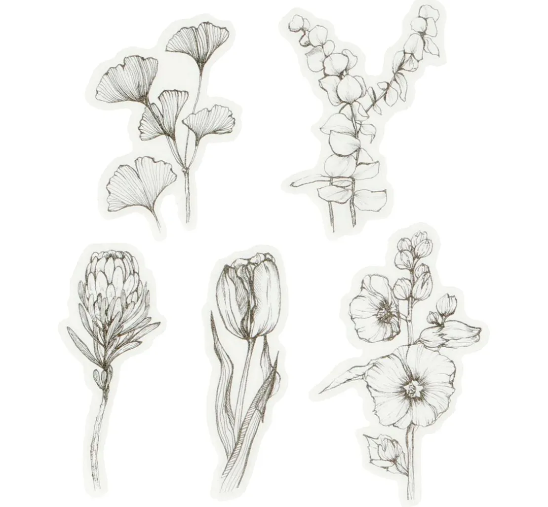 Wundervolle Washi Sticker „Blumen Schwarz/Weiß“ mit einer Größe von ca. 25 bis 60 mm. Es werden 30 selbstklebende Stanzmotive aus geprägtem mattem Papier geliefert. Jedes der 10 Motive ist 3-mal enthalten.