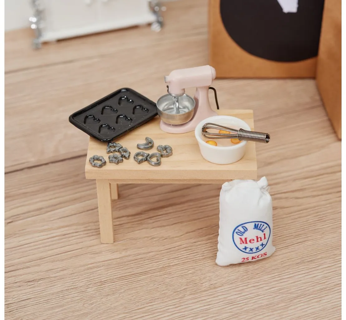 Das Wichtel-Set „Backutensilien“ mit verschiedenen Küchenhelfern ist ideal für Miniaturlandschaften und kleine Puppenhäuser sowie winterliche Wichtelwelten.
