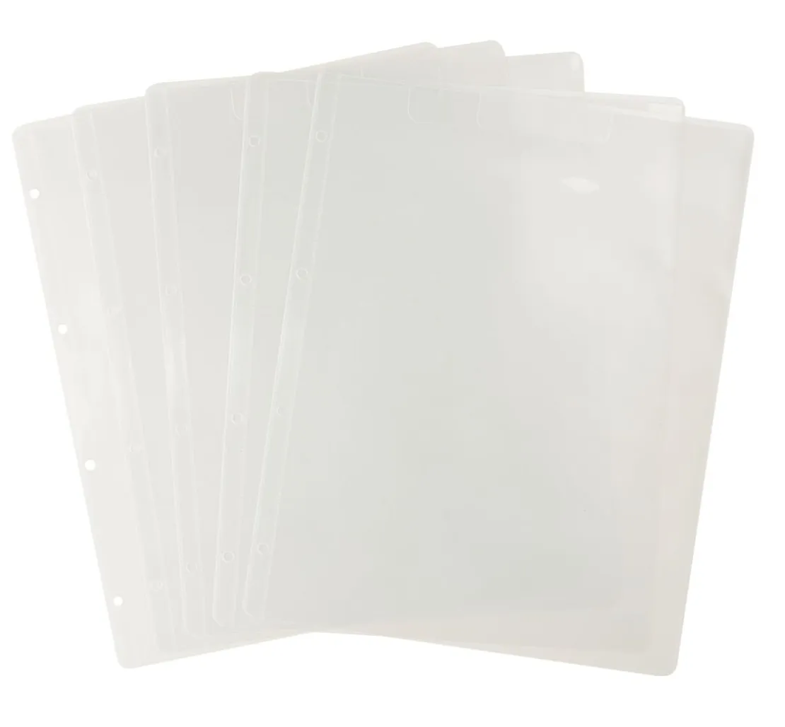 Sie erhalten 5 x DIN A4 Kunststoffhüllen mit jeweils einem Fach zum Aufbewahren von Stanzschablonen, Prägeschablonen, Papier