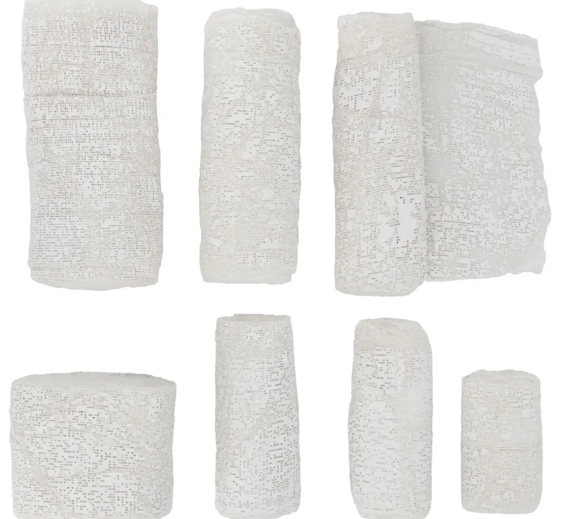 Die Gipsbinden bestehen aus hochwertiger Baumwolle und sind in der Farbe Weiß erhältlich. Sie sind in einer XXL Größe erhältlich. Durch das Eintauchen im Wasserbad werden die Gipsbinden benetzt und härten innerhalb von 20 bis 40 Minuten fest und formstabil aus.
