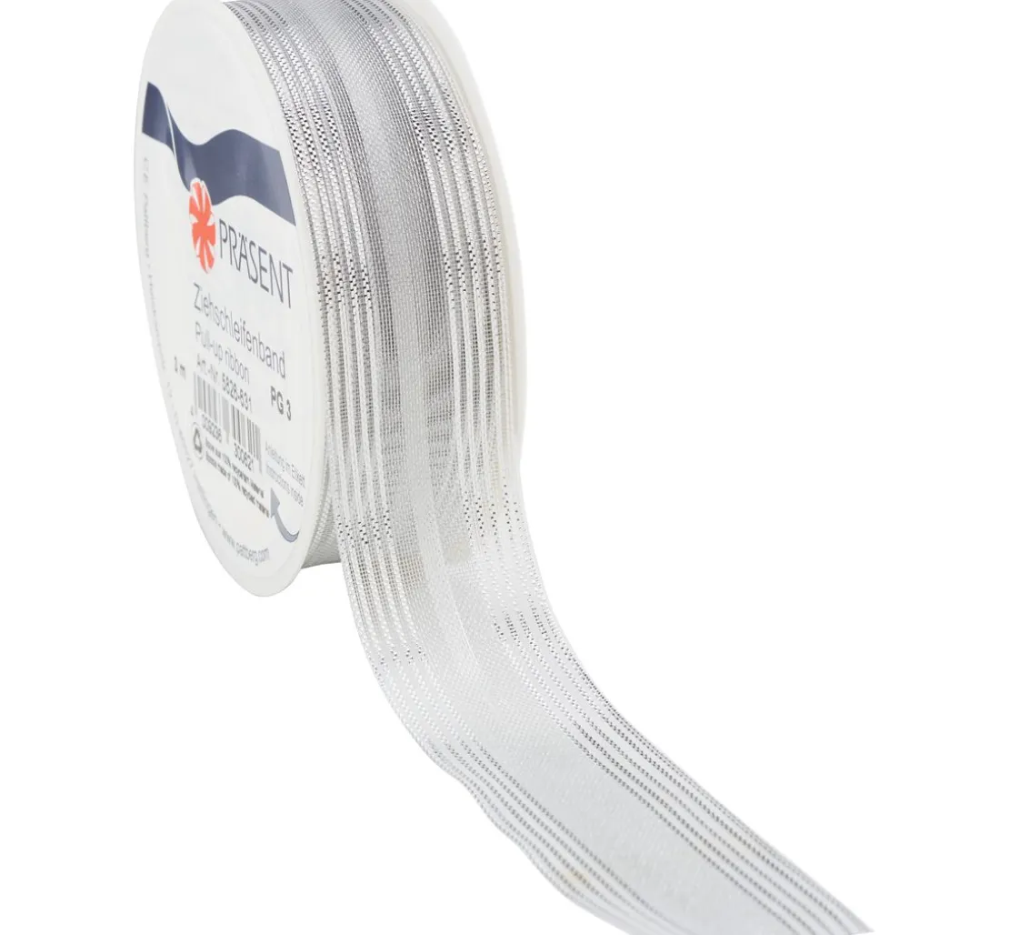 Im Handumdrehen Geschenkverpackungen effektvoll dekorieren – das gelingt mit dieser Ziehschleife „Astoria“. Es handelt sich um ein Band mit einer Breite von ca. 25 mm und einer Länge von ca. 3 m. Aus 100 % Polyester.