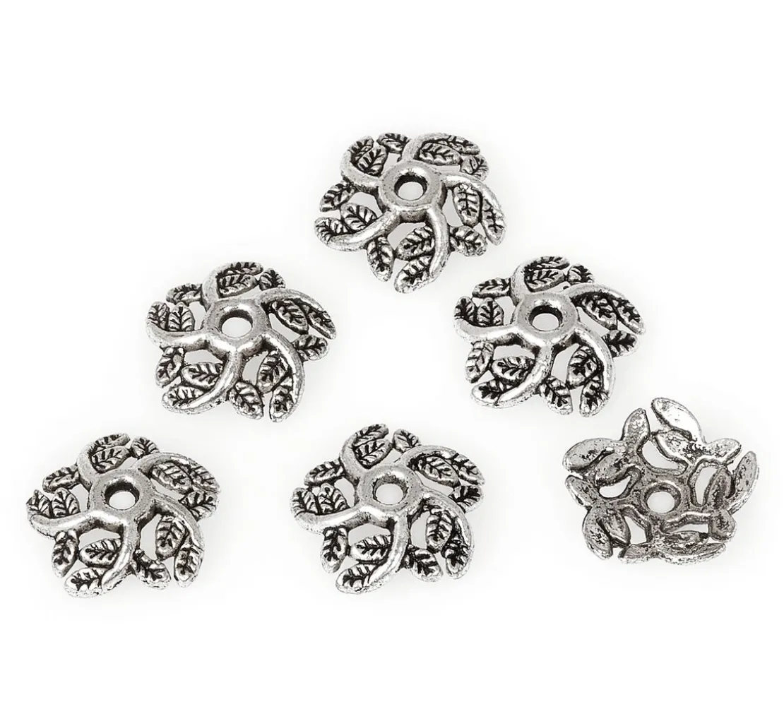 Zierkappen zum Schmücken, Verzieren und Schützen von Perlen, als Endkappen für Ketten und Armbänder, als Applikation für Accessoires oder als Zwischenstück für Ohrhänger und andere individuelle Schmuck-Kreationen. Sie erhalten 6 gewölbte, filigrane Perlenkappen in Blumen-Form im Set.