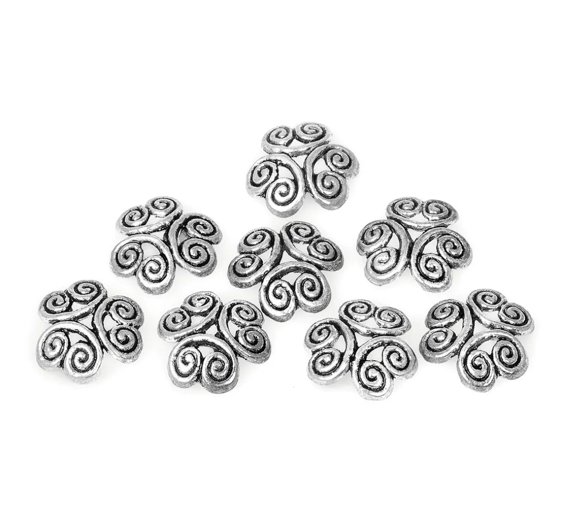 Die Zierkappen mit filigranem Ornament-Motiv sind ideal zum Verzieren, Schmücken und Schützen von Perlen und Schmucksteinen, werden als Endkappen oder Zwischenstück für Ketten, Armbänder und Ohrringe verwendet oder als Applikation für Accessoires benutzt. Das Set beinhaltet 8 gewölbte Perlenkappen mit Spiral-Muster im keltischen Stil.
